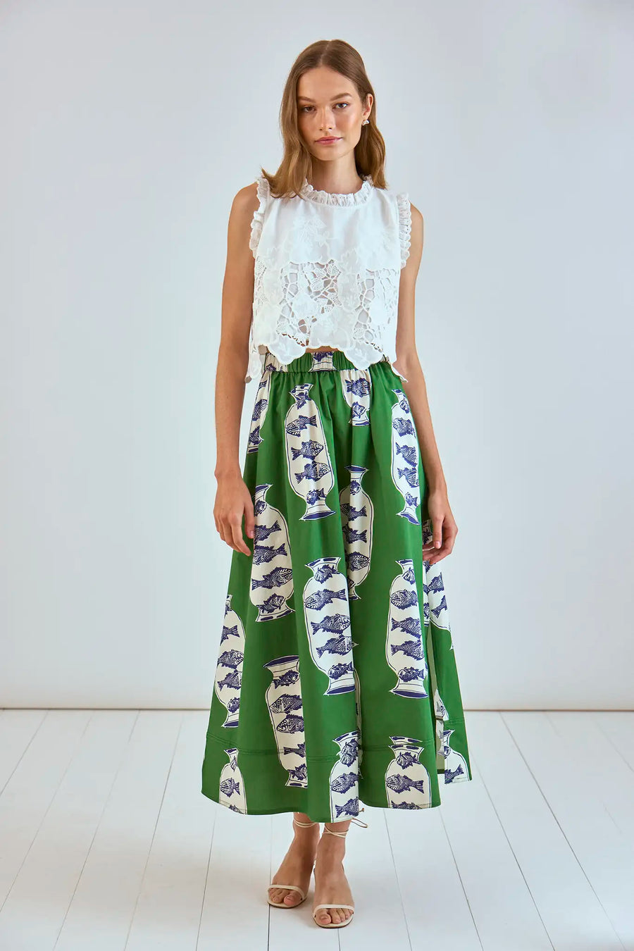 The Tatum Skirt is back for Spring in our bold Herring Green print, bringing effortless style and bold charm to your wardrobe. This midi skirt features a covered elastic waistband for a comfortable, relaxed fit, while its billowy silhouette creates movement with every step. Perfect for both ease and elegance, Tatum is a standout piece that will elevate your spring looks.