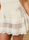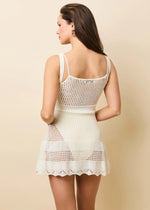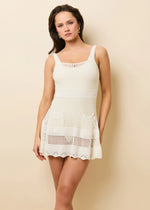 The Ulla Dress is a beautifully crafted piece, featuring a delicate pointelle cotton mesh design with a mix of reverse jersey, mesh pointelle, and ladder stitches for rich texture. Its relaxed fit-and-flare silhouette is enhanced with twisted yarn detailing, a scalloped hem, and front pockets for effortless charm. Finished with slender spaghetti straps and a rounded neckline and back, this airy dress is the perfect blend of elegance and ease.
