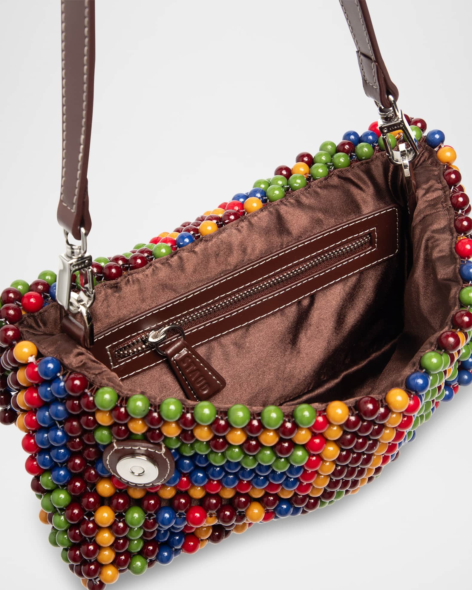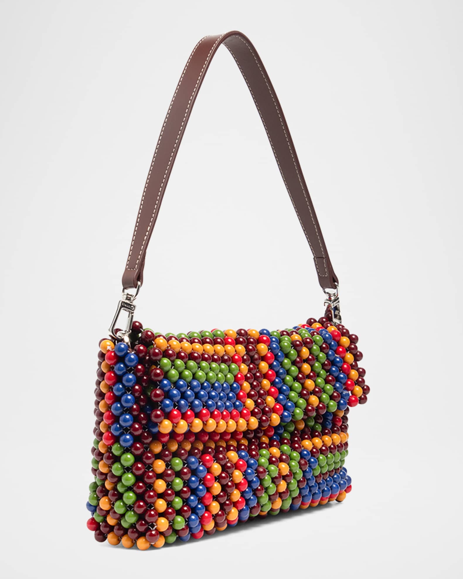 - STAUD "Timmy" convertible shoulder bag in beaded fabric and leather